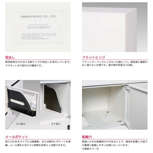 扉裏面にポケットを装備。メール類をためたり、小物類を効率良く収納できます。 | |||