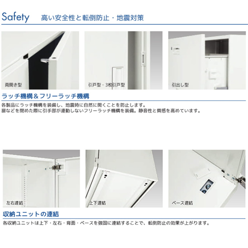 | ・ラッチ機構 地震時に自然に開くことを防止します。 |