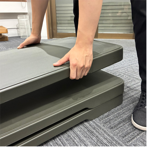 | 脚が天板内にぴったり収まるため、省スペースで段積みが可能です。 | |||