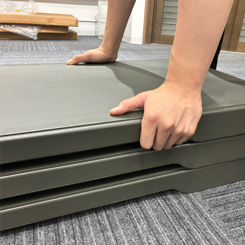 | 材質 | 天板:HDPE(高密度ポリエチレン) フレーム:粉末塗装スチール  |