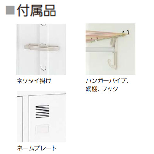 | 付属品 | ネクタイ掛け、ハンガーパイプ、フック、網棚×1、ネームプレート | ||