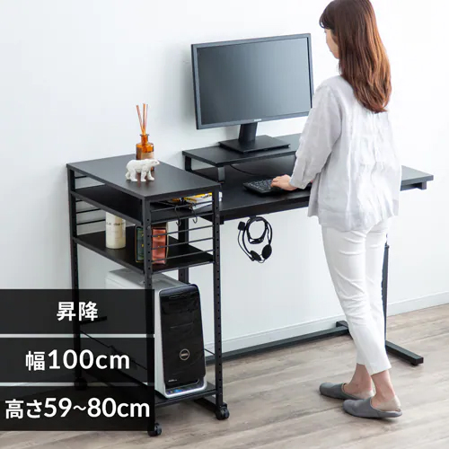 品名 : 1000x589x590- 800mm 昇降デスク(黒)