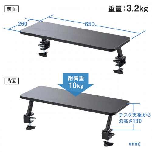 | 総耐荷重 | 10kg | 天板上からの高さ | 130mm |