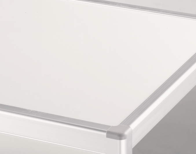 材質 | 天板・棚板:木製(メラミン化粧板) フレーム・脚部:アルミ押出し材・アルマイトクリア塗装仕上げ |