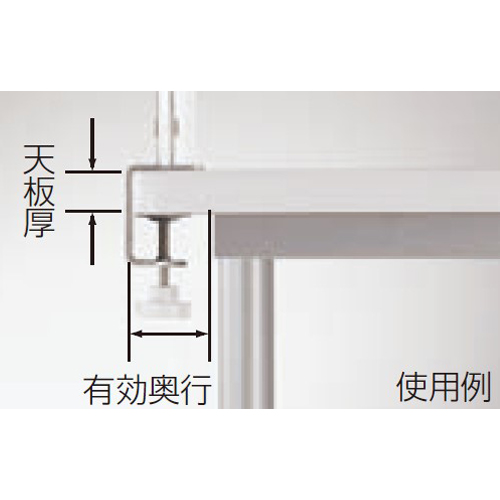 | クランプ式のベースをデスク天板に固定して使用します。取付が可能かデスクの天板厚と有効奥行寸法を事前にご確認ください。 | |||