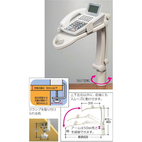 | 高さが変えられるテレホンスタンドでデスク周りの空間を有効活用。 | |||
