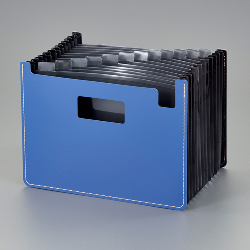 書類のボリュームによってポケットが伸び縮みする分類に便利なアコーディオン式の収納スタンド
