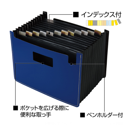 | ポケットを広げる際便利な取っ手、ペンホルダー付 | |||