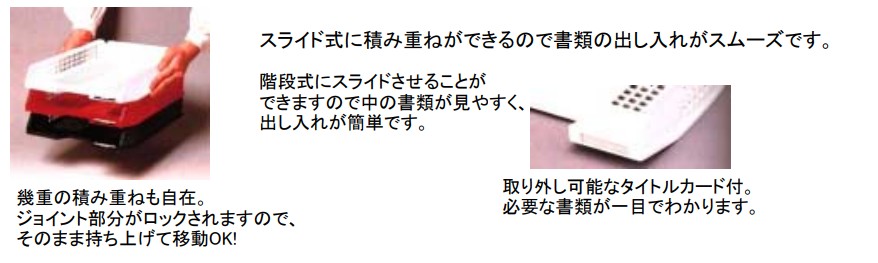 | 階段式にスライドさせることができますので中の書類が見やすく、出し入れが簡単です。 | |||