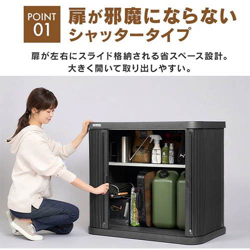 | シャッターは、スライド扉で大きく開いて物の取り出しがしやすいです。 | |||