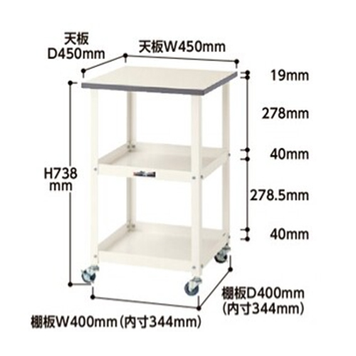 サイズ | 450(W)×450(D)×738(H)mm(天板部) | 棚板サイズ | 400(W)×400(D)mm |