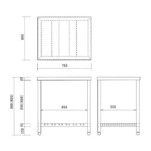品名 : 750x600x800mm 作業台(二段/ステンレス製)