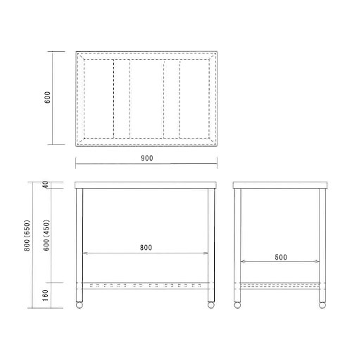 品名 : 900x600x800mm 作業台(二段/ステンレス製)
