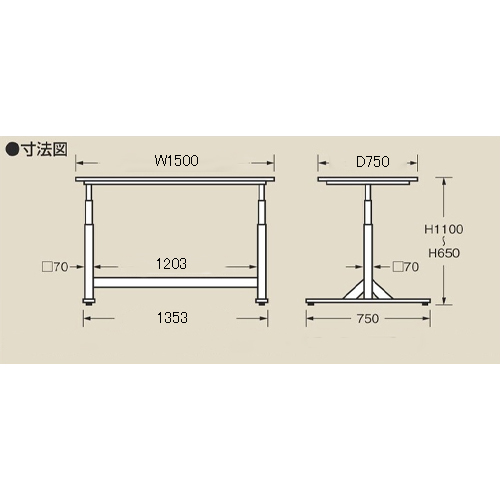| サイズ(W×D×H)mm | 1500×750×660~1110 | 重量 | 59kg |
