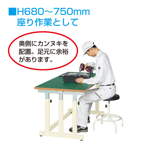 品名 : 1500x750x680-1080mm/300kg 作業台/ハンドル式
