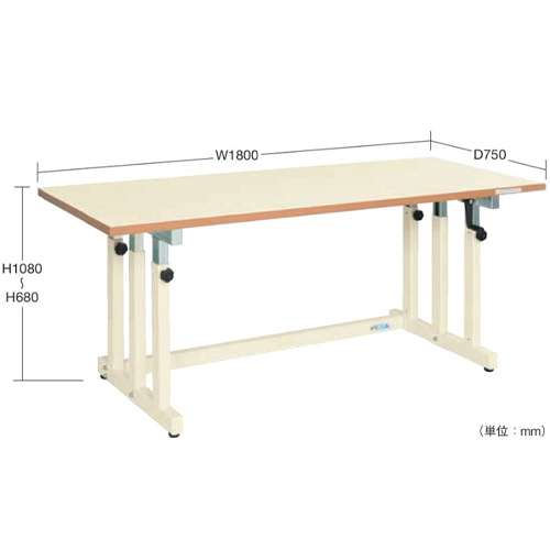 品名 : 1800x750x680-1080mm/300kg 作業台/ハンドル式