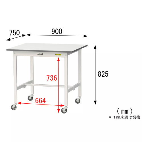 高さ825mmで立ち作業用として使いやすいサイズの、シンプルな移動式ワークテーブル | |||