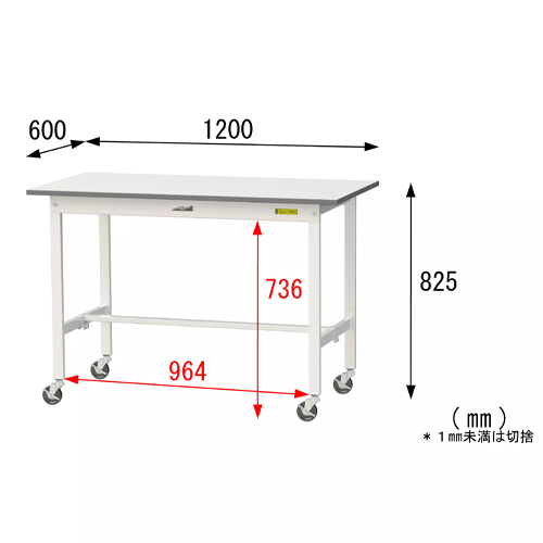 品名 : 1200x600x825mm/128kg ワークテーブル(キャスター付)