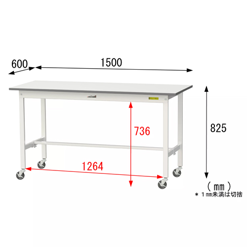 高さ825mmで立ち作業用として使いやすいサイズの、シンプルな移動式ワークテーブル | |||