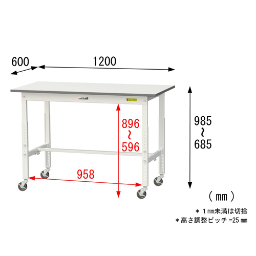 品名 : 1200x600x685-985mm ワークテーブル(キャスター付)