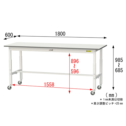 品名 : 1800x600x685-985mm ワークテーブル(キャスター付)