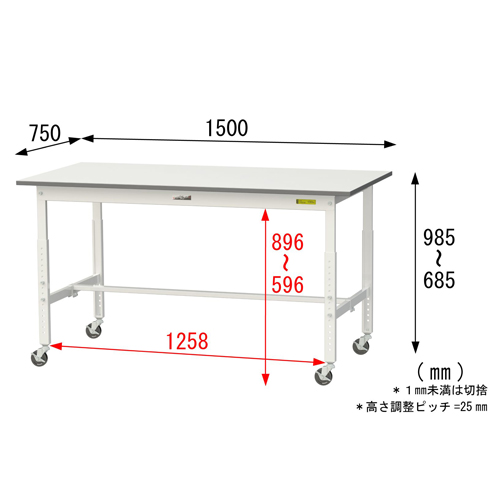 品名 : 1500x750x685-985mm ワークテーブル(キャスター付)