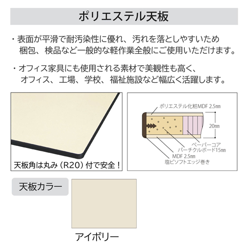 材質 | 脚部:スチール 天板:ポリエステル化粧MDF貼り |