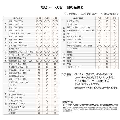 | 塩ビシート天板仕様。耐久性・耐汚染性・防水性に優れ、弾力性があり滑りにくいです。 | |||