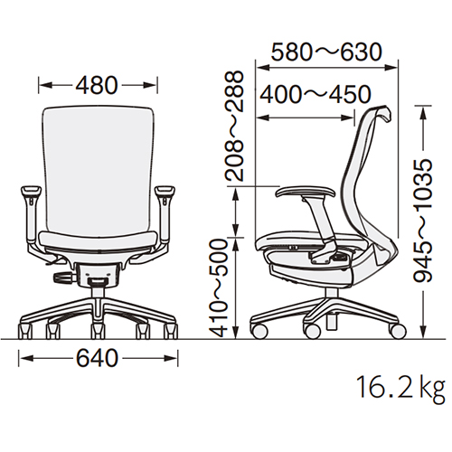 サイズ(mm) | 640(W)×580~630(D)×945~1035(H) | 脚幅 | 640mm |