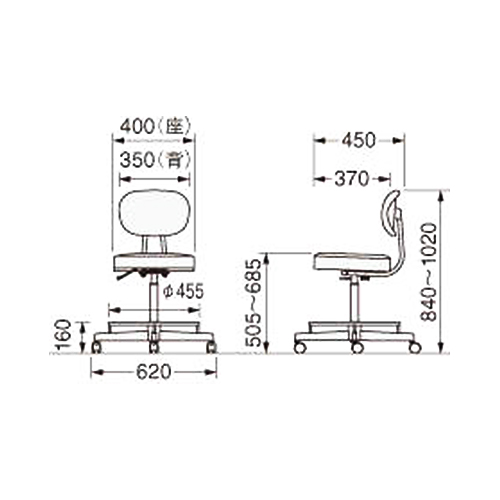 座高 | 505~685mm | 脚幅 | 620㎜ |