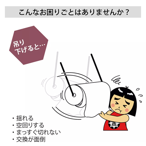| ロール材のセット・交換は、スイングアームに抜き差しするだけで簡単! | |||
