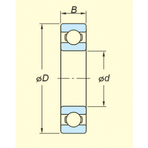 | 軌道輪(内輪・外輪)とボール、保持器からなり、側面から内部のボールと保持器が見えている状態です | |||