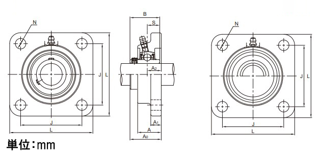 品名 : MUCF209/ 45mm 角フランジ形ユニット