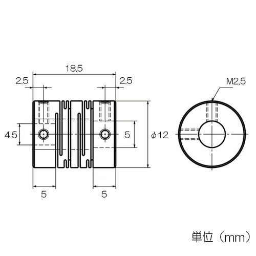 品名 : 4.5x 5 mm/12mm フレキシブルカップリング(セットスクリュー)
