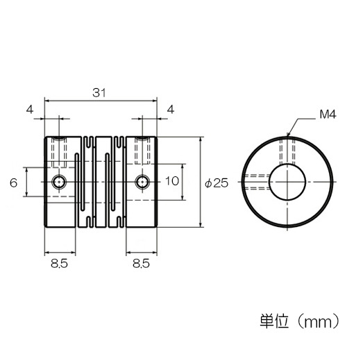 品名 : 6 x 10mm/25mm フレキシブルカップリング(セットスクリュー)