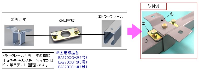 | 関連商品 | EA970CG-2 : 2号トラックレール固定板 |