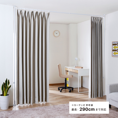 | 床や天井を傷つけずに、お好きな場所にカーテンを設置できます。 | |||