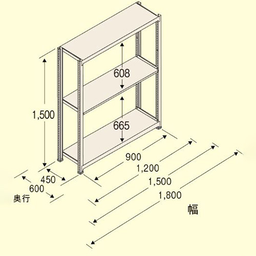 品名 : 1490x450x1500mm/150kg/3段 スチール棚
