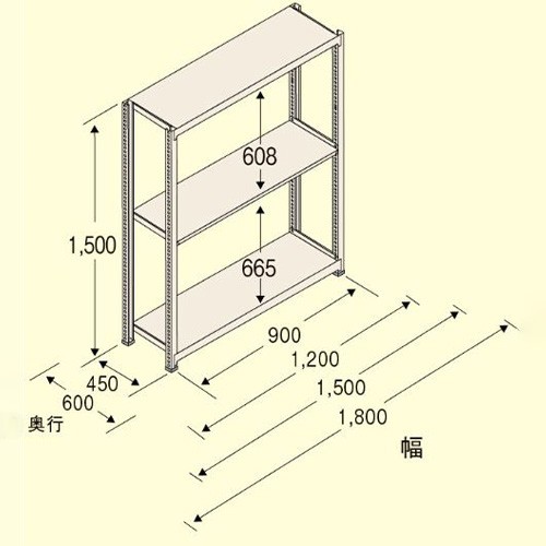 品名 : 890x450x1500mm/150kg/3段 スチール棚