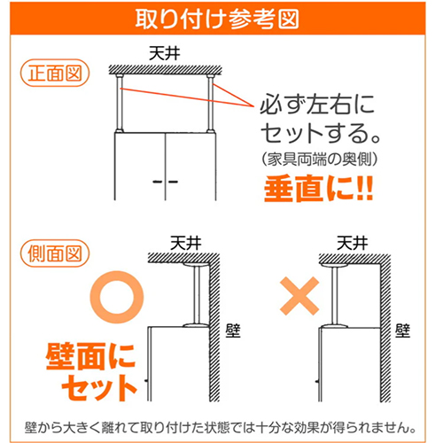 | 家具の天面と天井の間に取り付け、家具の転倒を防止する突っ張り棒 | |||