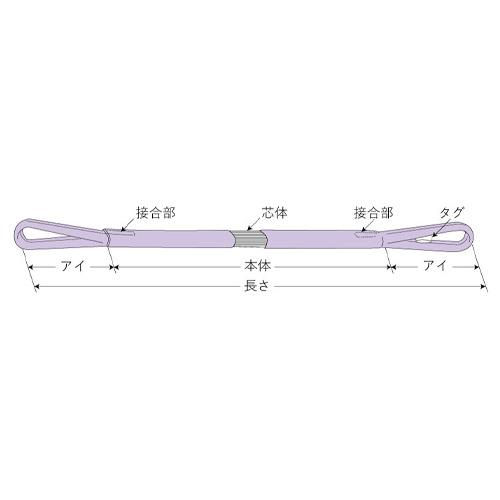 | 横滑りや突起による引っ掛けには非常に弱いので、角張ったものや出っ張りのある吊荷には、必ず「補強筒」をしてお使いください。 | |||