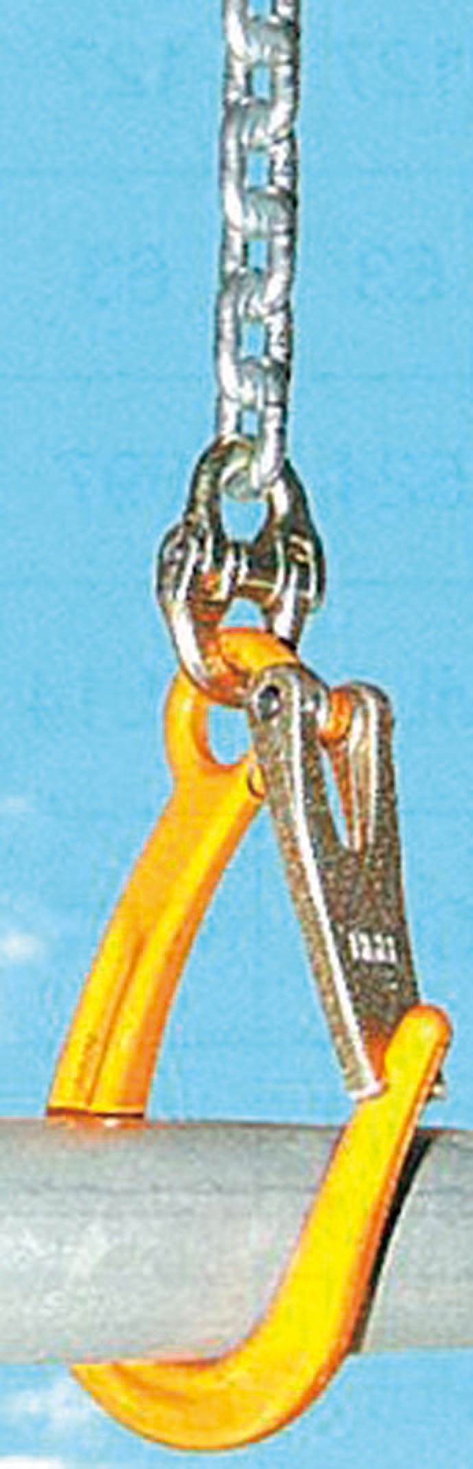 ワイドな口幅の広口フックを装着した一本吊チェーンフックです
