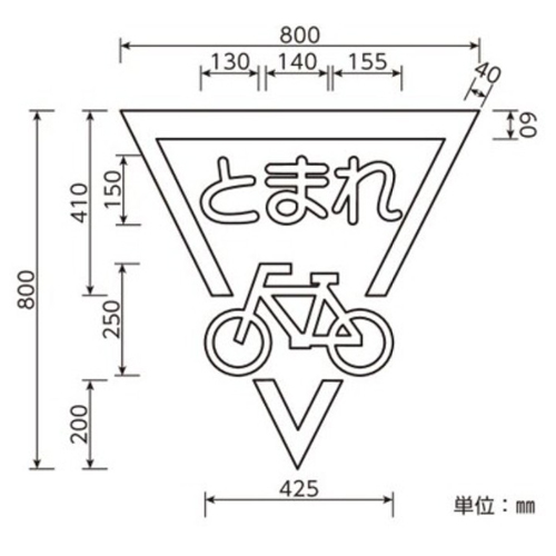 品名 : 800x800mm 路面道路標識[とまれ/自転車]