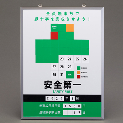 | 内容 | 安全第一・無事故目標日数・連続無事故日数 | サイズ | 600×450×20mm |
