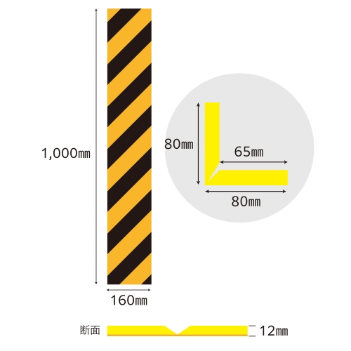| シマの幅 | 50mm | 用途 | 工場、建設現場での危険防止、衝突時の衝撃緩和に |