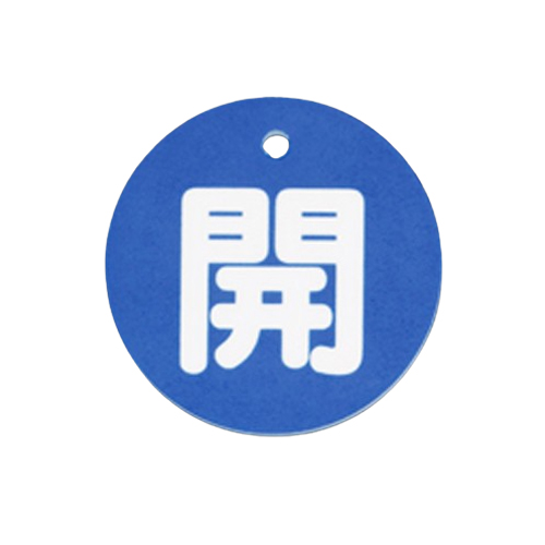 品名 : φ80mm 丸型バルブ開閉札(開・青)