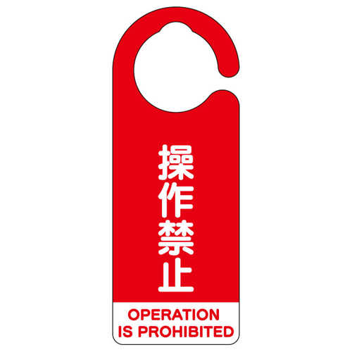 品名 : 160x60mm[フック]バルブ開閉札(操作禁止・赤/5枚