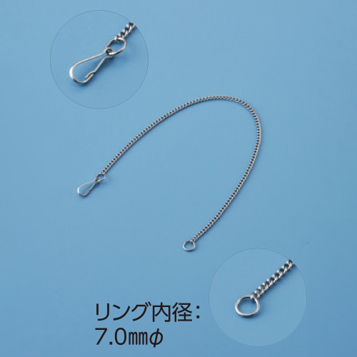 | 材質 | 鎖:鉄クロムメッキ リング:鉄(三価ユニクロ) フック(ナスカン):真ちゅうニッケルメッキ |