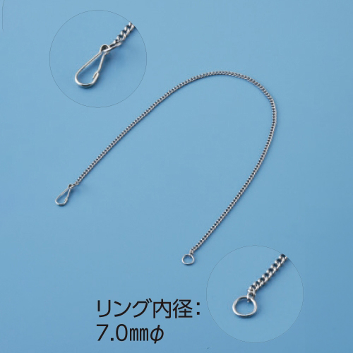 | 材質 | 鎖:鉄クロムメッキ リング:鉄(三価ユニクロ) フック(ナスカン):真ちゅうニッケルメッキ |