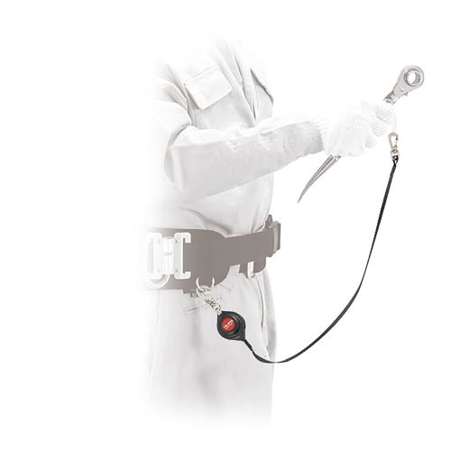 | 工具を落下させてもロープが伸びて衝撃吸収し、工具の跳ね返りを防止します。 | |||